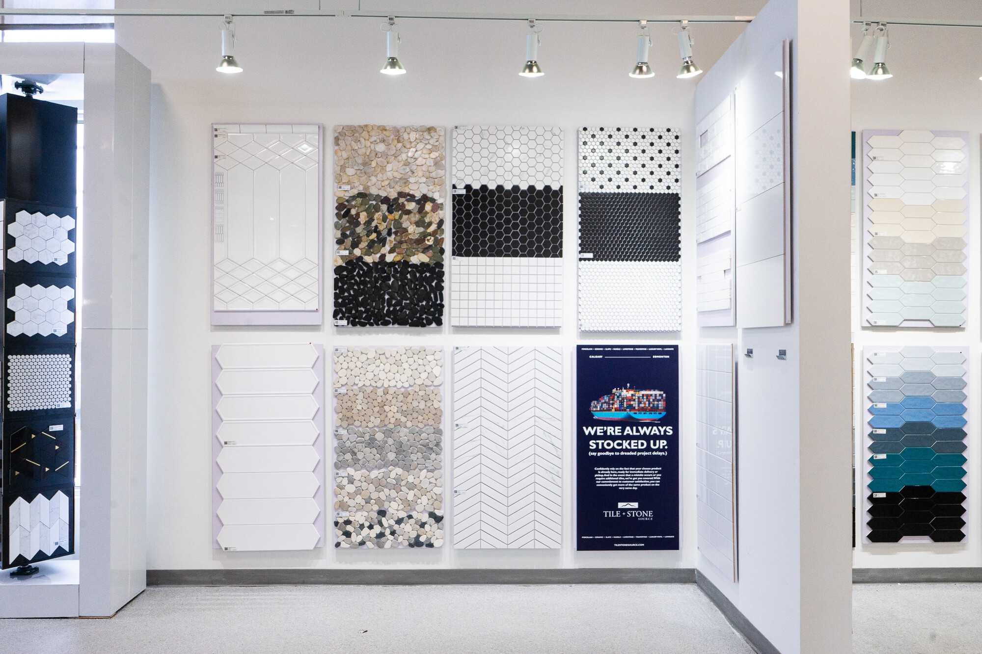 Our Edmonton showroom was designed with careful attention to function and details that we have learned in our decades of business. Our large format displays stylishly feature our hundreds of quality products, the majority of which is stocked right in our showroom!