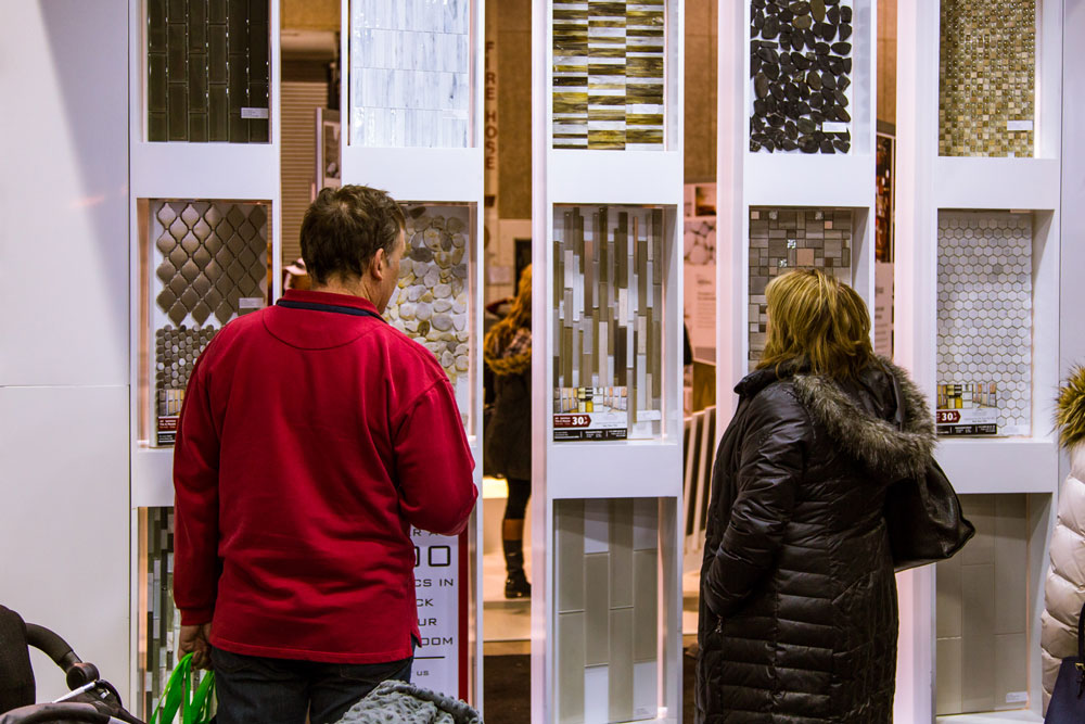 Only a fraction of our regularly stocked tile was on display at the home show. Come visit us in our showroom to see our full selection of product.