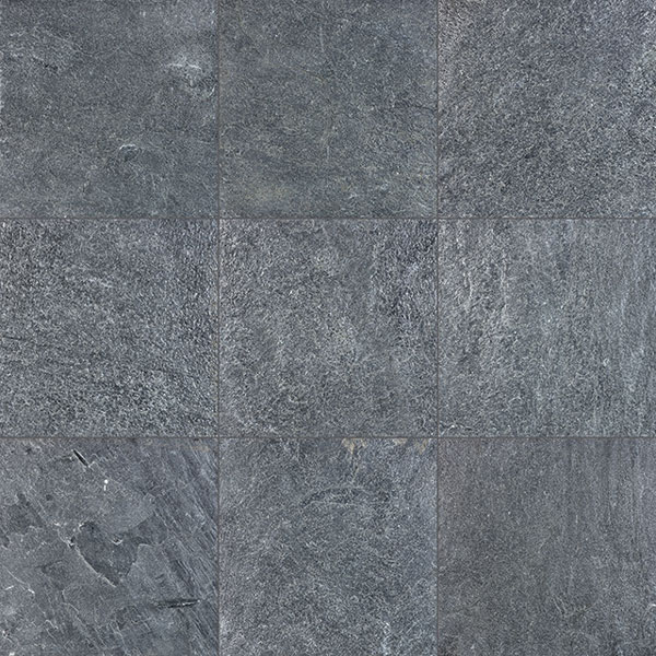 There are two finishes available with slate: calibrated and honed. Calibrated tiles have a smooth, even bottom, but the top of the slate is left with it’s natural, cleft-like texture. This creates a naturally slip-resistant tile. Honed tiles are perfectly smooth on top, which, in many cases, leaves a swirl-like pattern. Honed tiles offer a smooth, even floor, but are not suitable for outdoor application due to being slippery.