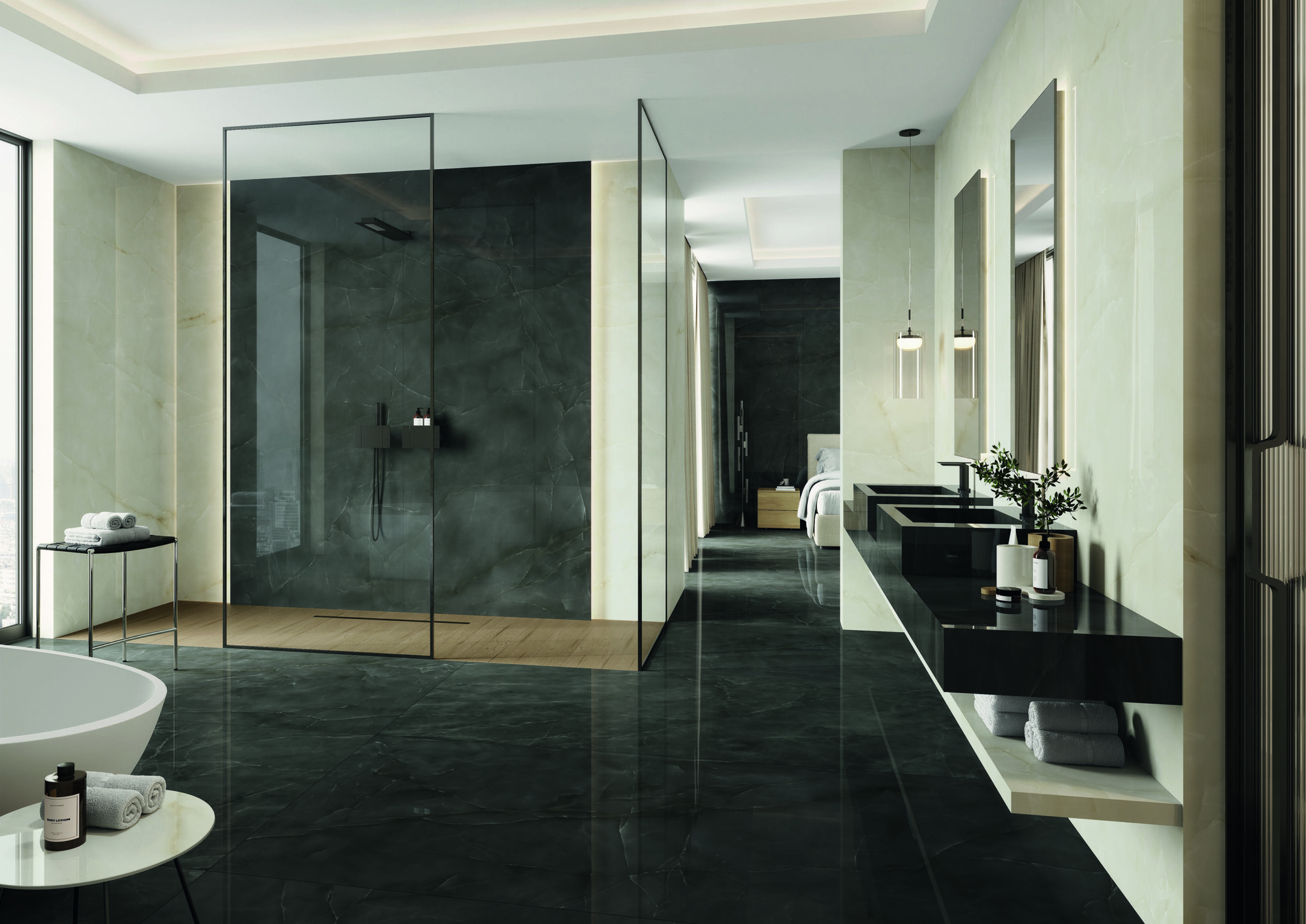 Marvel Onyx reinterprets the timeless charm of natural onyx in a contemporary and refined way. The marble-effect porcelain stoneware collection is distinguished by its elegance and deep, homogeneous surfaces.
