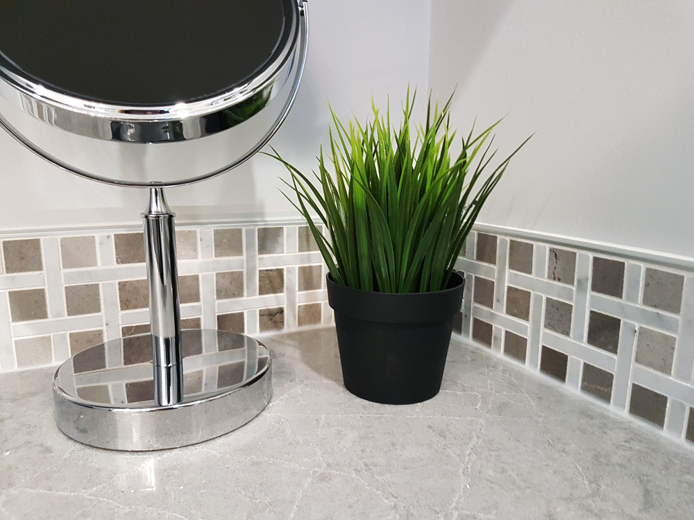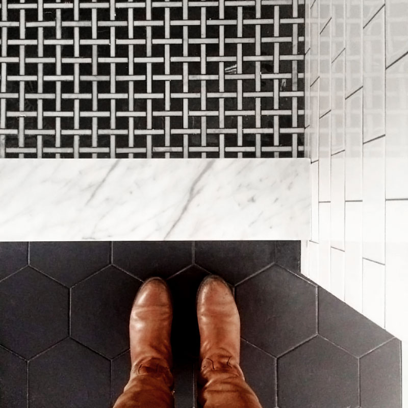 The Apartment series marble mosaics feature a basketweave with a twist. Instead of the standard mix of small squares and large rectangles, the rectangles and squares swap sizes. The large square creates a grid-like effect. Thus, the mosaic's design is clean, straight, and orderly.