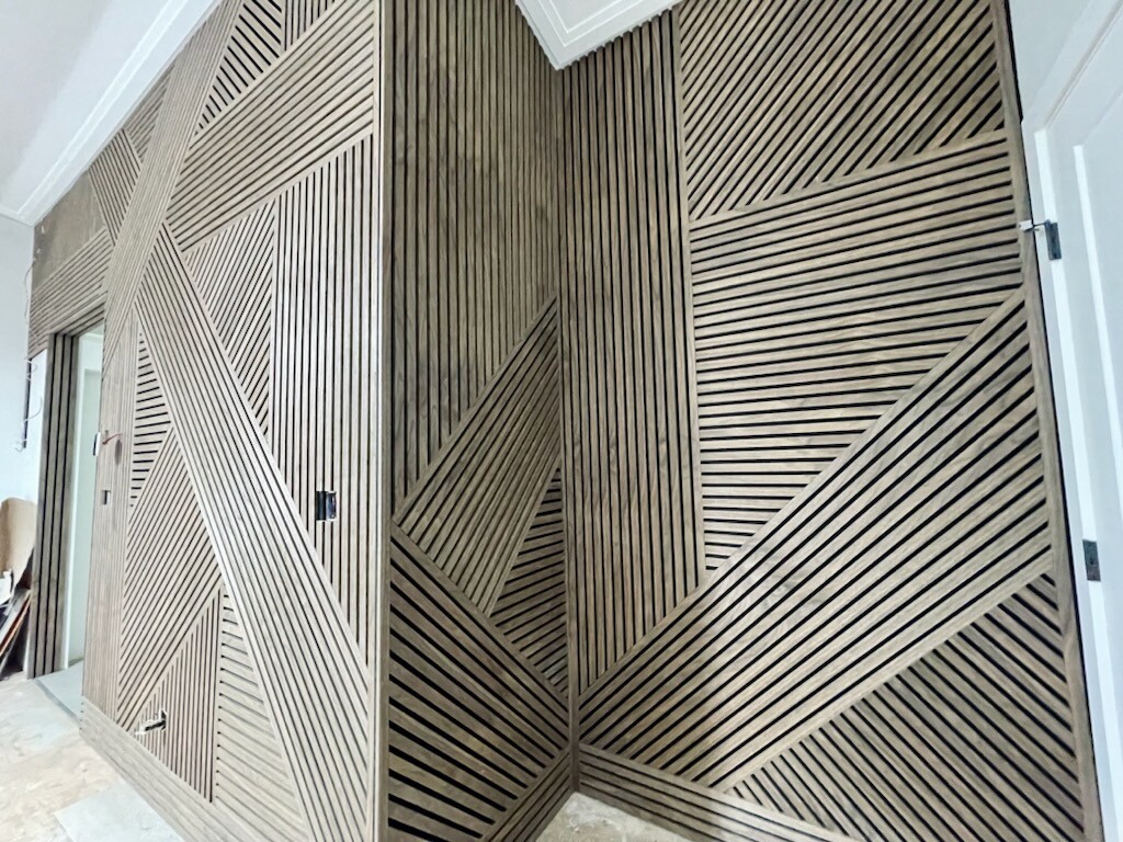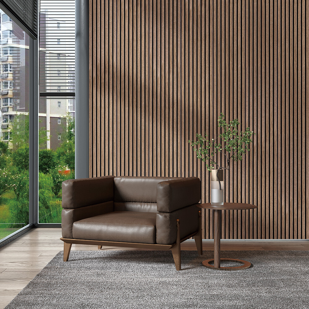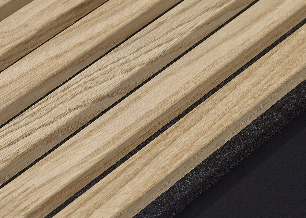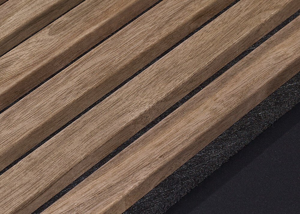 Introducing our exquisite collection of acoustic panels, designed to enhance both sound quality and aesthetic appeal. Crafted from high-density polyester fiber and featuring elegant, 3-sided wood veneer slats, these panels effectively reduce noise by 55% when mounted directly on walls. For even greater sound absorption, install them with an air pocket using battens, achieving an impressive 85% reduction in noise. Available in three stunning colors—Light Oak, Walnut, and Smoke Oak—these panels seamlessly blend functionality with beauty, making them a perfect addition to any space.