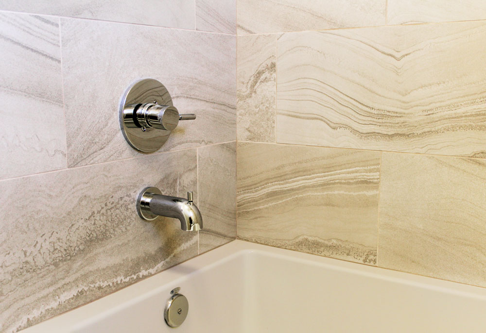 Take, for example, this master bath where Riviera Lune porcelain tile was used throughout.